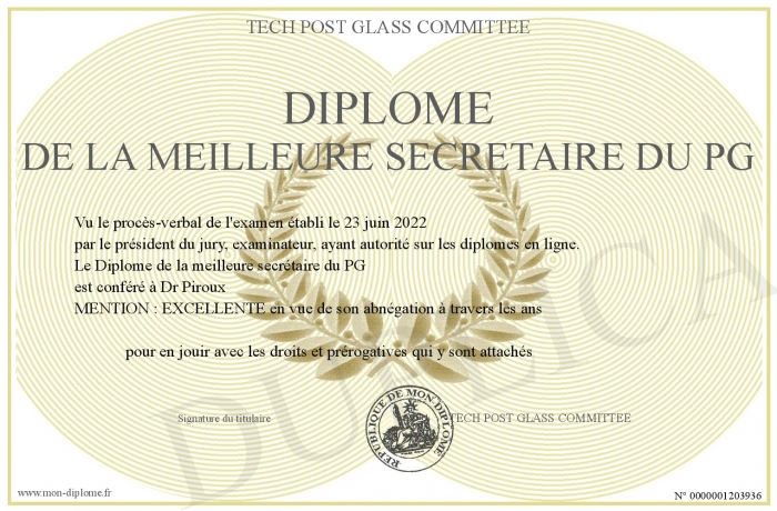 Envoyez par email votre Diplôme de la meilleure secrétaire du PG personalisé