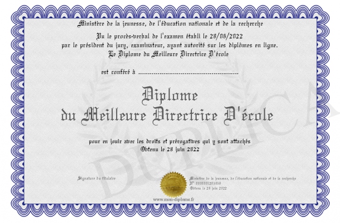 Envoyez par email votre Diplôme du Meilleure Directrice D'école personalisé