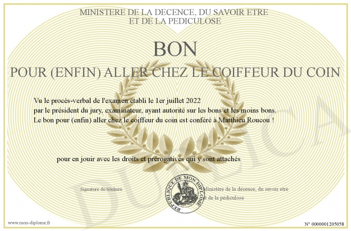 Envoyez par email votre bon pour (enfin) aller chez le coiffeur du coin personalisé