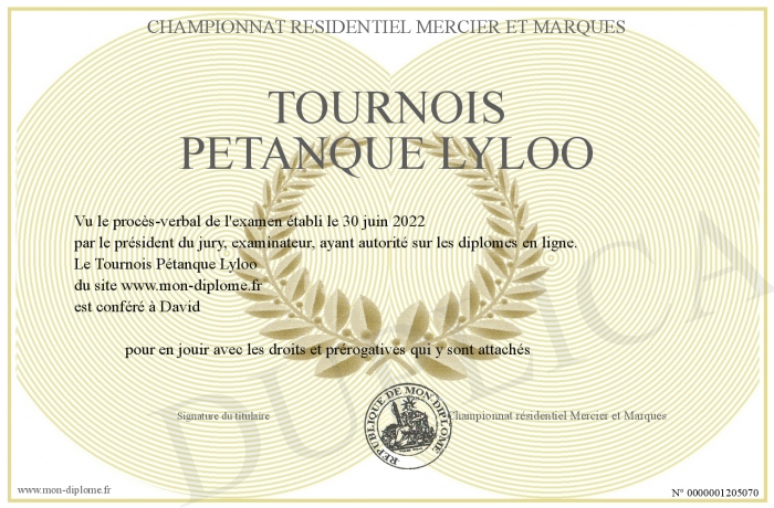 Envoyez par email votre Tournois Pétanque Lyloo personalisé