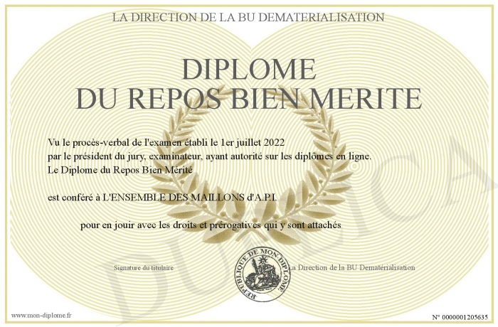 Envoyez par email votre Diplôme du Repos Bien Mérité personalisé
