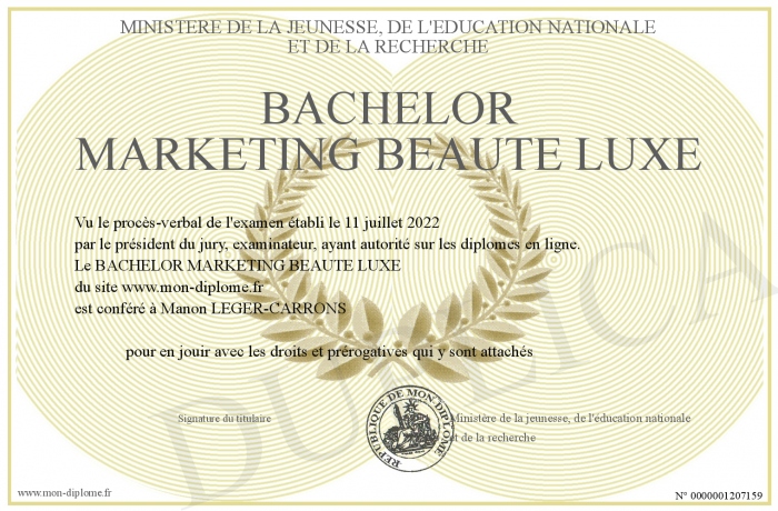 Envoyez par email votre BACHELOR MARKETING BEAUTE LUXE personalisé