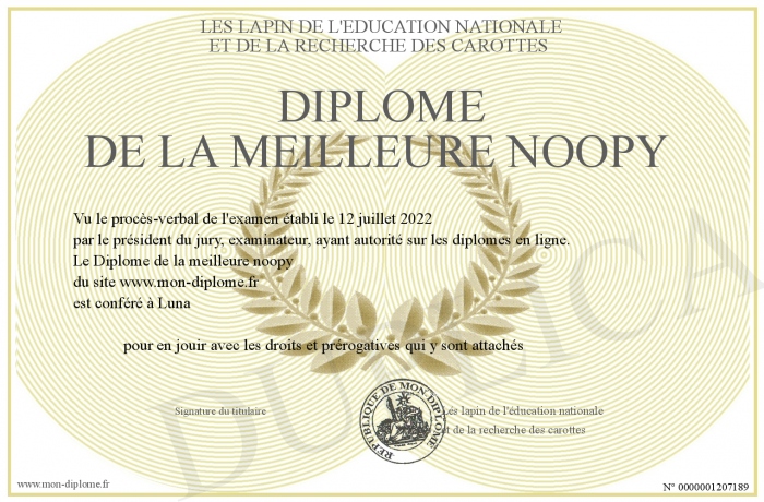 Envoyez par email votre Diplôme de la meilleure noopy personalisé