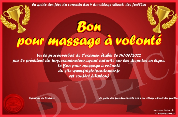 Envoyez par email votre Bon pour massage à volonté personalisé