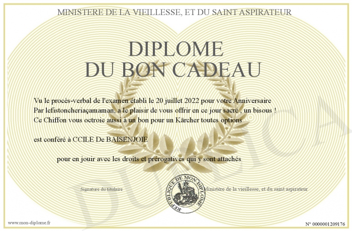 Envoyez par email votre Diplôme du Bon cadeau personalisé