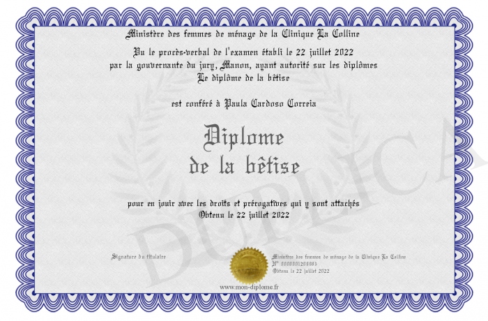 Envoyez par email votre Diplôme de la bêtise personalisé