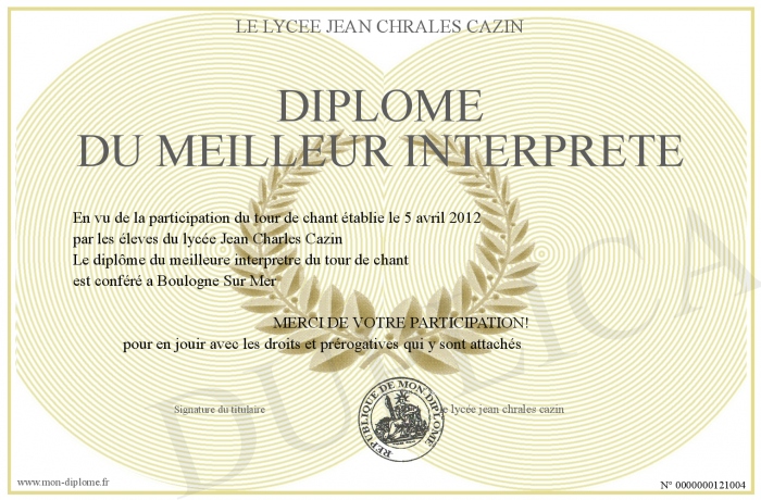 Envoyez par email votre Diplôme du meilleur interprete personalisé