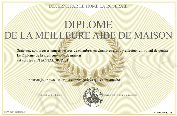 Envoyez par email votre Diplome de la meilleure aide de maison personalisé