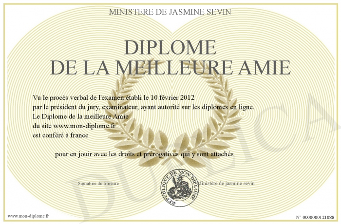 Envoyez par email votre Diplome de la meilleure Amie personalisé