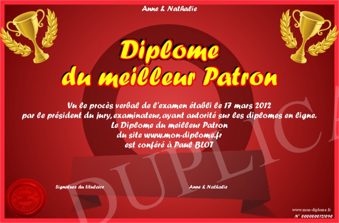 Envoyez par email votre Diplôme du meilleur Patron personalisé