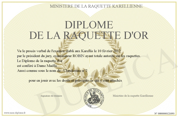 Envoyez par email votre Diplôme de la raquette d'or personalisé