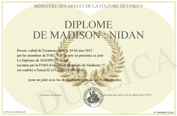 Envoyez par email votre Diplome de MADISON : nidan personalisé