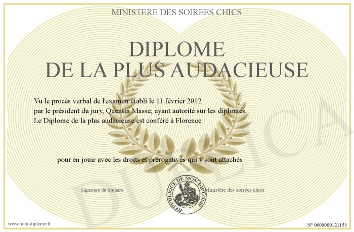 Envoyez par email votre Diplôme de la plus audacieuse personalisé