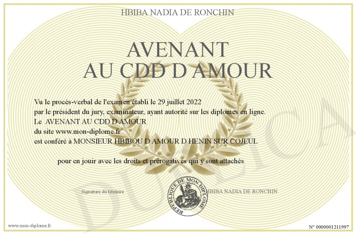 Envoyez par email votre AVENANT AU CDD D AMOUR personalisé