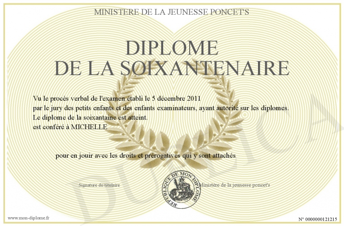 Envoyez par email votre Diplôme de la soixantenaire personalisé