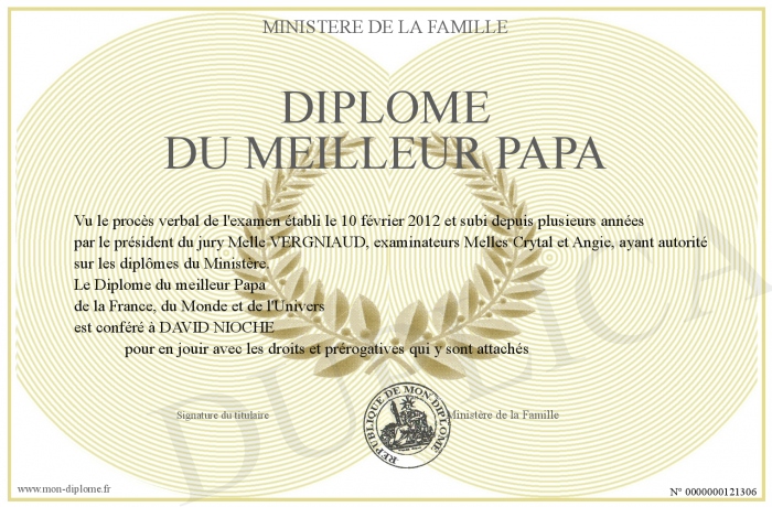 Envoyez par email votre Diplome du meilleur Papa personalisé