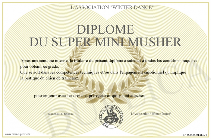 Envoyez par email votre Diplôme du Super MINI MUSHER personalisé
