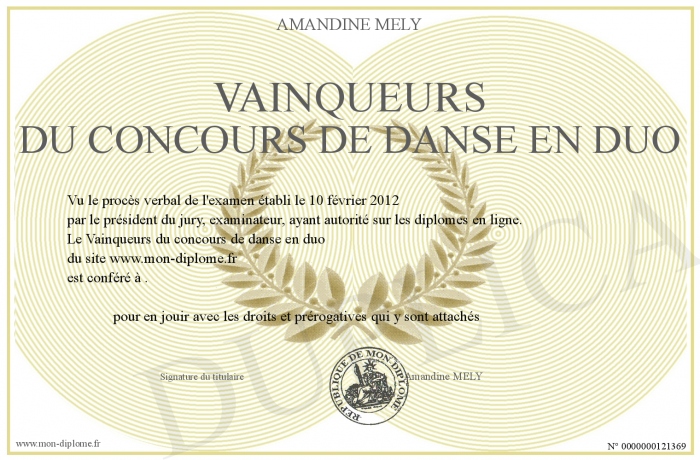 Envoyez par email votre Vainqueurs du concours de danse en duo personalisé