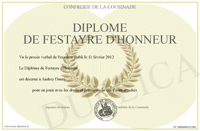 Envoyez par email votre Diplôme de Festayre d'Honneur personalisé