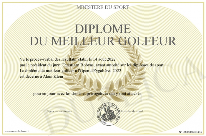 Envoyez par email votre Diplôme du meilleur golfeur personalisé