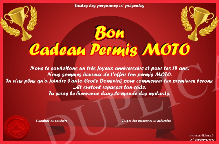 Envoyez par email votre Bon Cadeau Permis MOTO personalisé