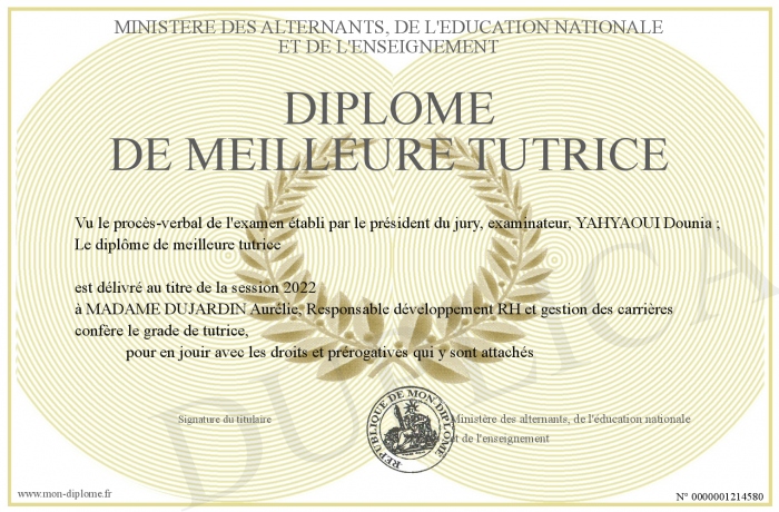 Envoyez par email votre Diplôme de meilleure tutrice personalisé