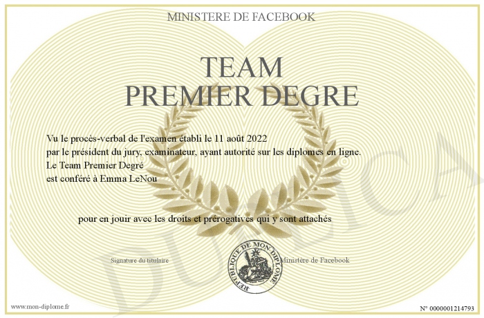 Envoyez par email votre Team Premier Degré personalisé