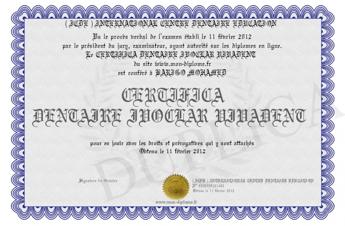 Envoyez par email votre CERTIFICA DENTAIRE IVOCLAR VIVADENT personalisé