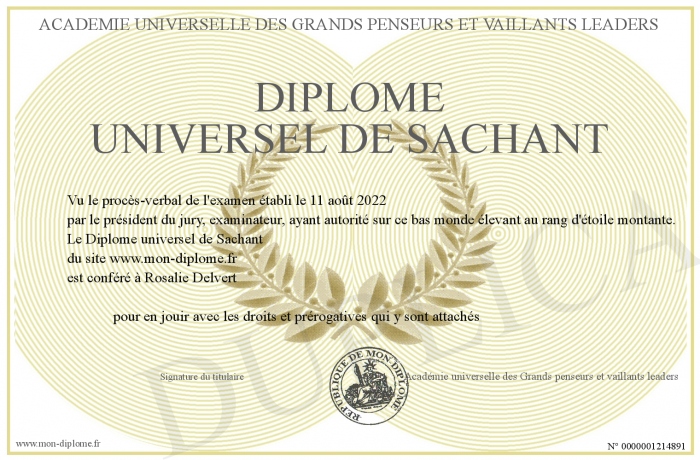 Envoyez par email votre Diplôme universel de Sachant personalisé