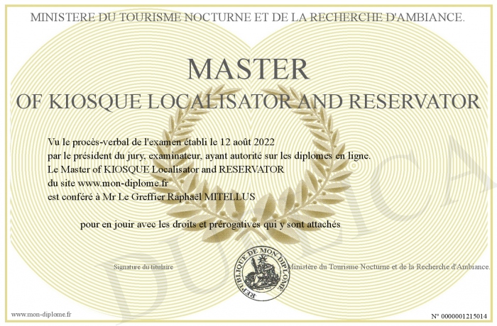 Envoyez par email votre Master of KIOSQUE Localisator and RESERVATOR personalisé