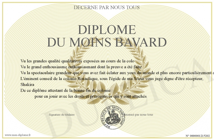 Envoyez par email votre Diplôme du moins bavard personalisé