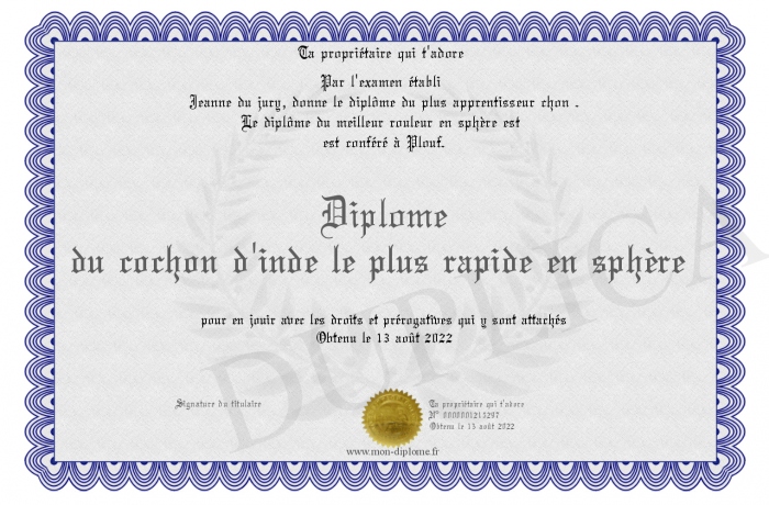 Envoyez par email votre Diplôme du cochon d'inde le plus rapide en sphère personalisé