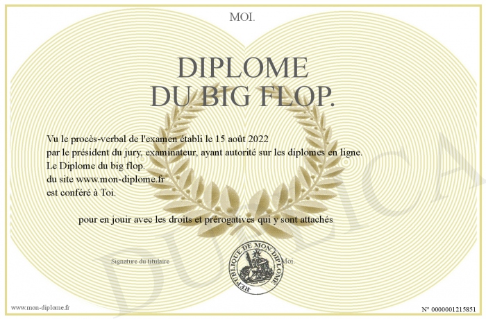 Envoyez par email votre Diplôme du big flop. personalisé