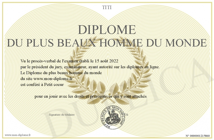 Envoyez par email votre Diplôme du plus beaux homme du monde personalisé