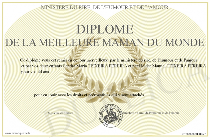 Envoyez par email votre Diplôme de la meilleure Maman du monde personalisé
