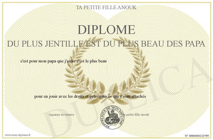 Envoyez par email votre diplome du plus jentille est du plus beau des papa personalisé