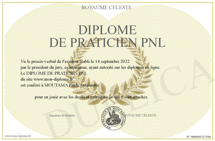 Envoyez par email votre DIPLOME DE PRATICIEN PNL personalisé
