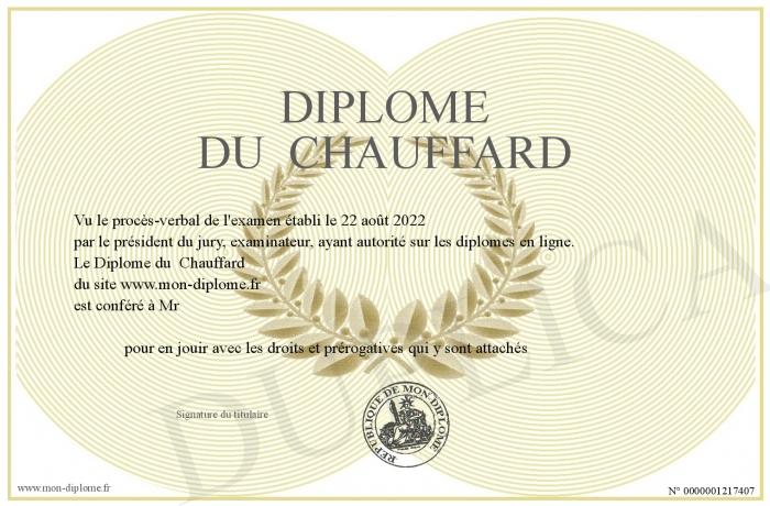 Envoyez par email votre Diplôme du Chauffard personalisé