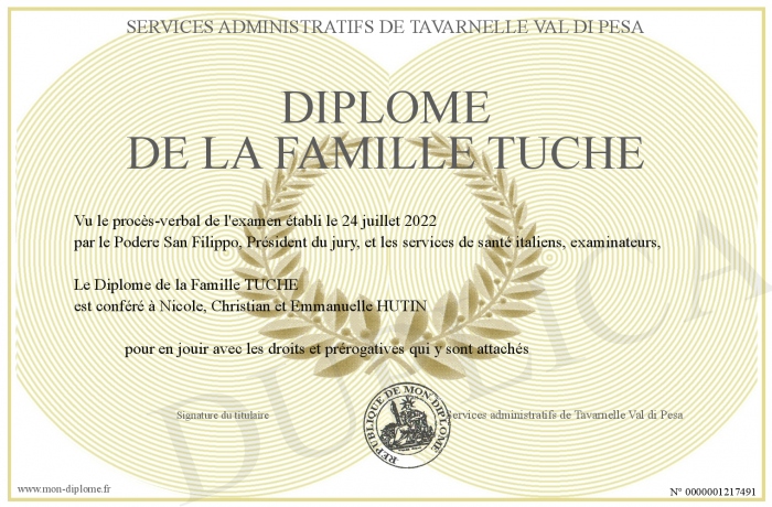 Envoyez par email votre Diplôme de la Famille TUCHE personalisé