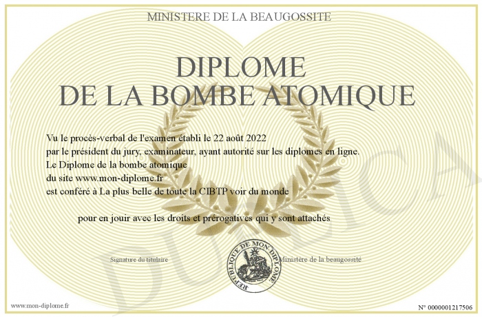 Envoyez par email votre Diplôme de la bombe atomique personalisé