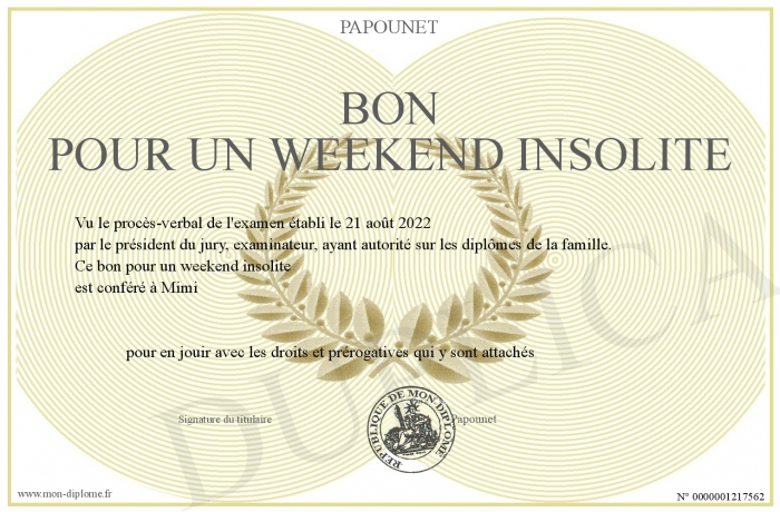Envoyez par email votre bon pour un weekend insolite personalisé