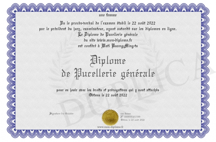 Envoyez par email votre Diplôme de Pucellerie générale personalisé