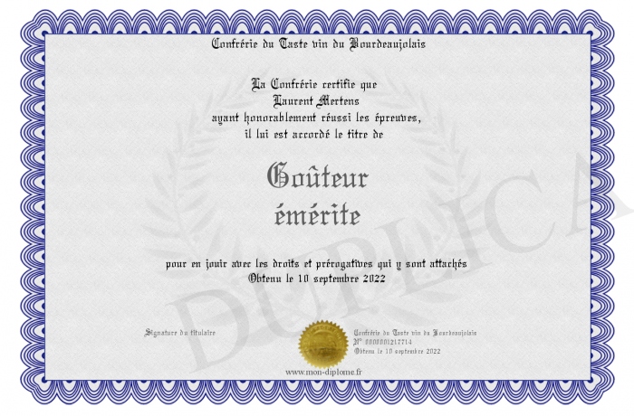 Envoyez par email votre Goûteur émérite personalisé