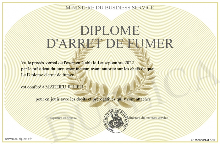 Envoyez par email votre Diplôme d'arret de fumer personalisé