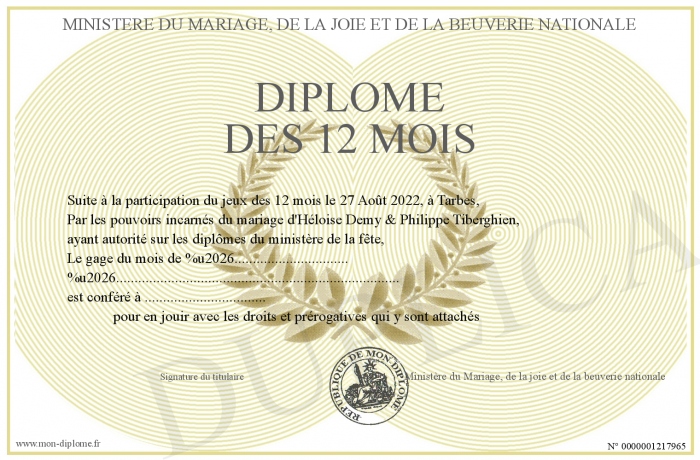 Envoyez par email votre Diplôme des 12 mois personalisé