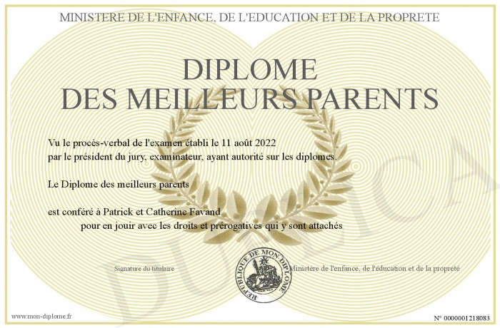 • Diplôme des meilleurs parents
