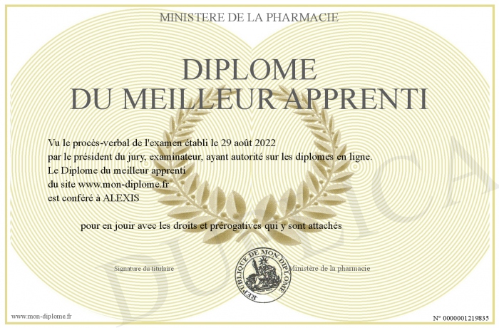 Envoyez par email votre Diplôme du meilleur apprenti personalisé