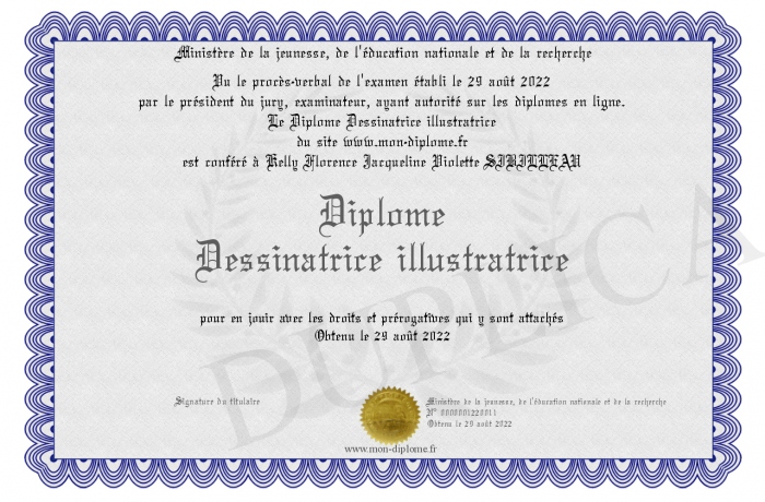 Envoyez par email votre Diplome Dessinatrice illustratrice personalisé