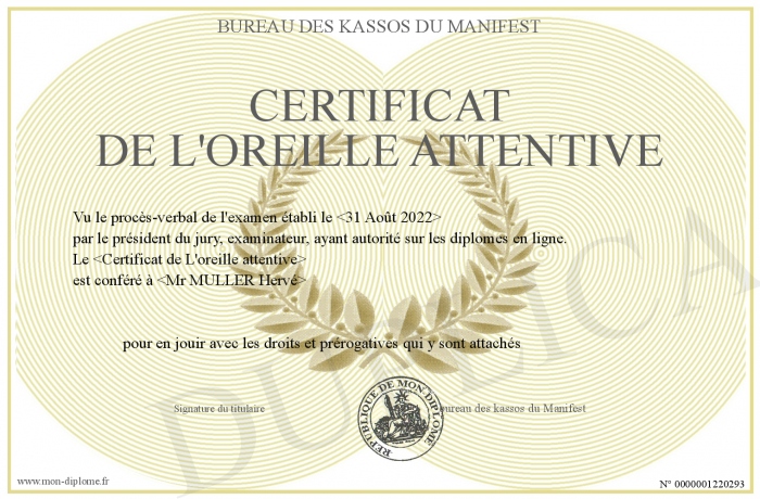 Envoyez par email votre Certificat de l'oreille attentive personalisé