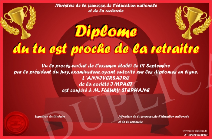 Envoyez par email votre Diplôme du tu est proche de la retraitre personalisé